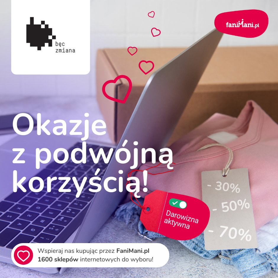 Pomagaj bezpłatnie przy okazji zakupów w internecie Płacisz tyle, co zawsze, a średnio 2,5% wartości Twoich zakupów trafi do organizacji, którą wybierzesz