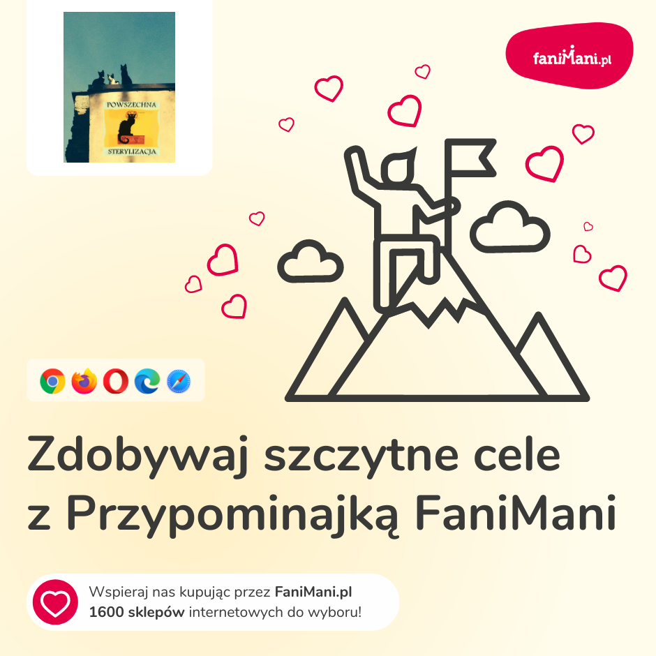Przypominajka, to specjalna wtyczka do przeglądarki, która przypomina o tym aby Was wspierać przy okazji zakupów w sklepie będącym partnerem FaniMani.pl. Dzięki temu nie trzeba pamiętać o tym, aby wejść na FaniMani - jednym słowem - dzięki Przypominajce otrzymujecie 5x więcej darowizn!