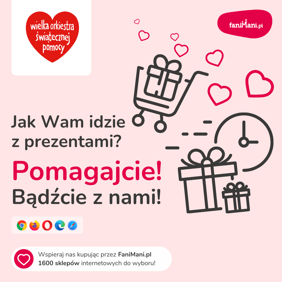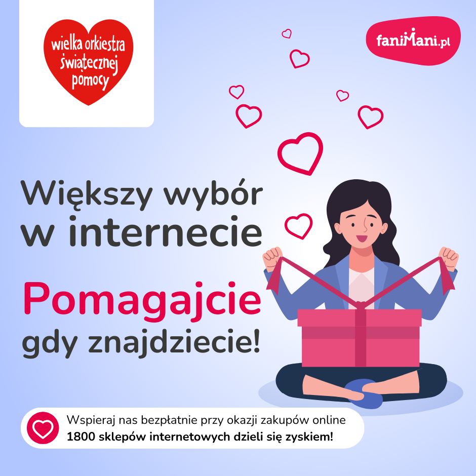 Pomagaj bezpłatnie przy okazji zakupów w internecie Płacisz tyle, co zawsze, a średnio 2,5% wartości Twoich zakupów trafi do organizacji, którą wybierzesz