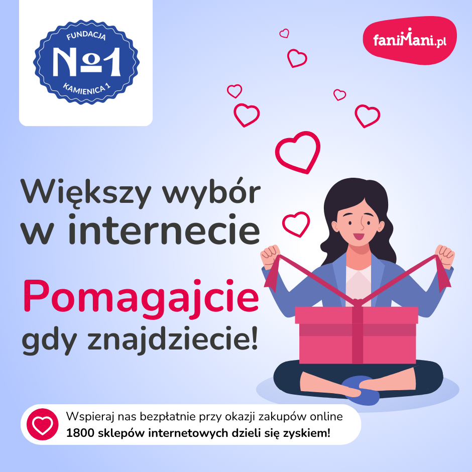 Pomagaj bezpłatnie przy okazji zakupów w internecie Płacisz tyle, co zawsze, a średnio 2,5% wartości Twoich zakupów trafi do organizacji, którą wybierzesz