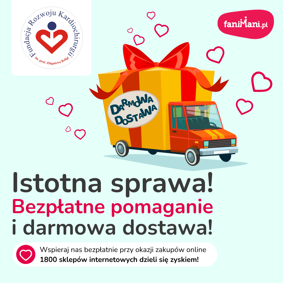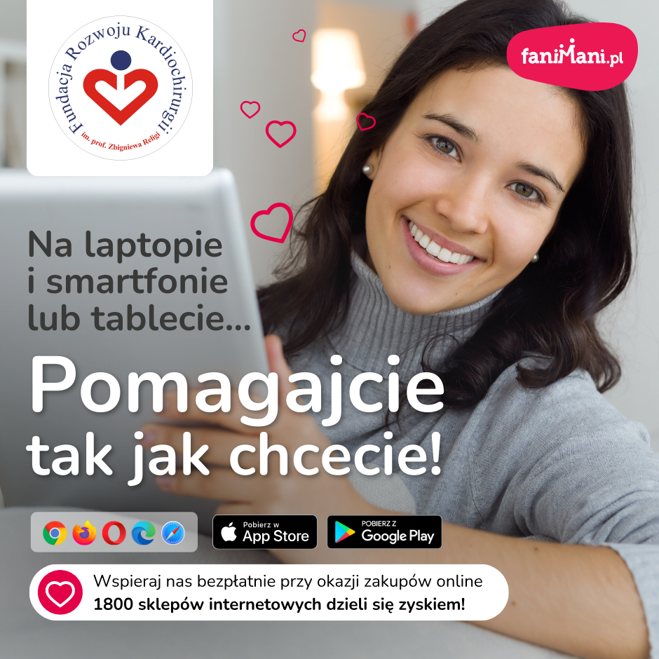 Pomagaj bezpłatnie przy okazji zakupów w internecie Płacisz tyle, co zawsze, a średnio 2,5% wartości Twoich zakupów trafi do organizacji, którą wybierzesz