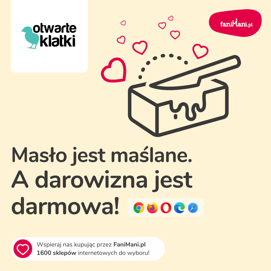 Pomagaj bezpłatnie przy okazji zakupów w internecie Płacisz tyle, co zawsze, a średnio 2,5% wartości Twoich zakupów trafi do organizacji, którą wybierzesz
