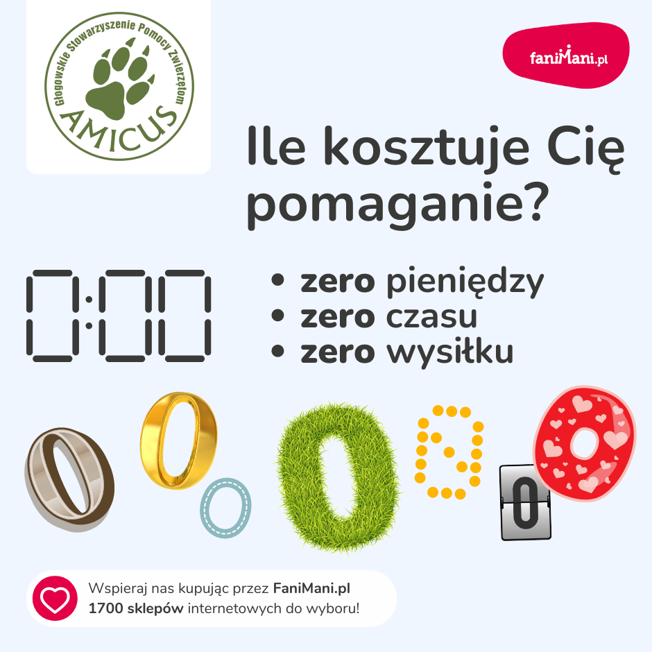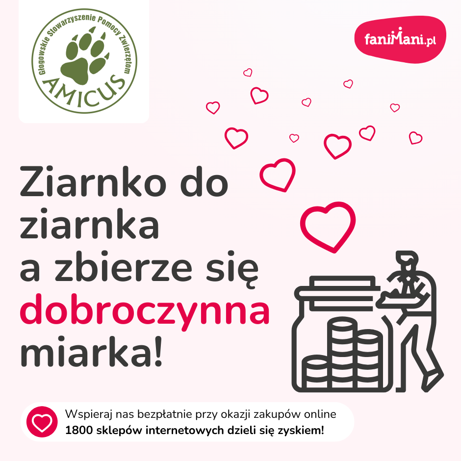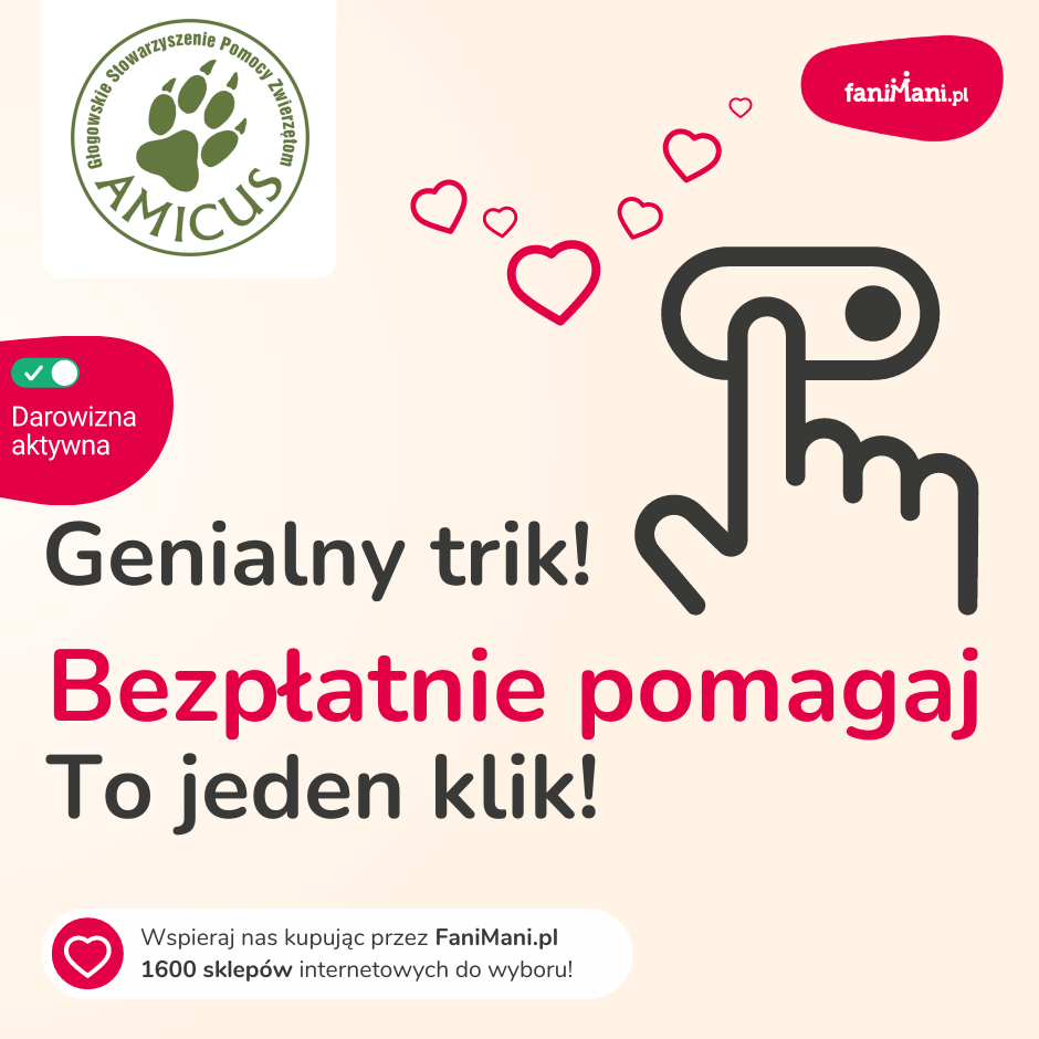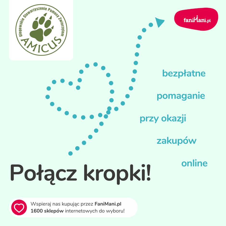 Masz telefon/laptop z funkcją kamery? Jasne, że TAK! Masz możliwość nagrać krótki filmik, gdzie pokazujesz jak prosto jest wspierać Głogowskie Stowarzyszenie Pomocy Zwierzętom AMICUS przy zakupach online. Scenariusz również masz. Do dzieła :)