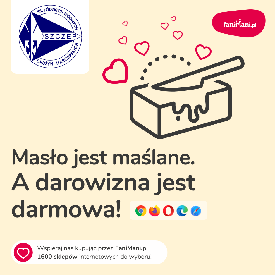 Pomagaj bezpłatnie przy okazji zakupów w internecie Płacisz tyle, co zawsze, a średnio 2,5% wartości Twoich zakupów trafi do organizacji, którą wybierzesz