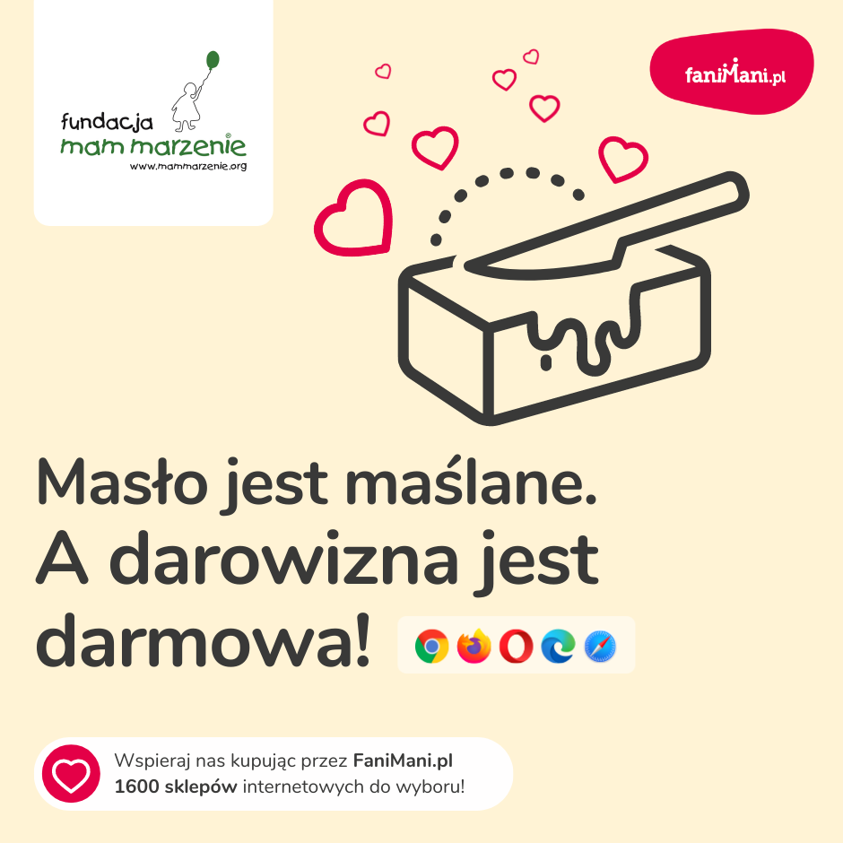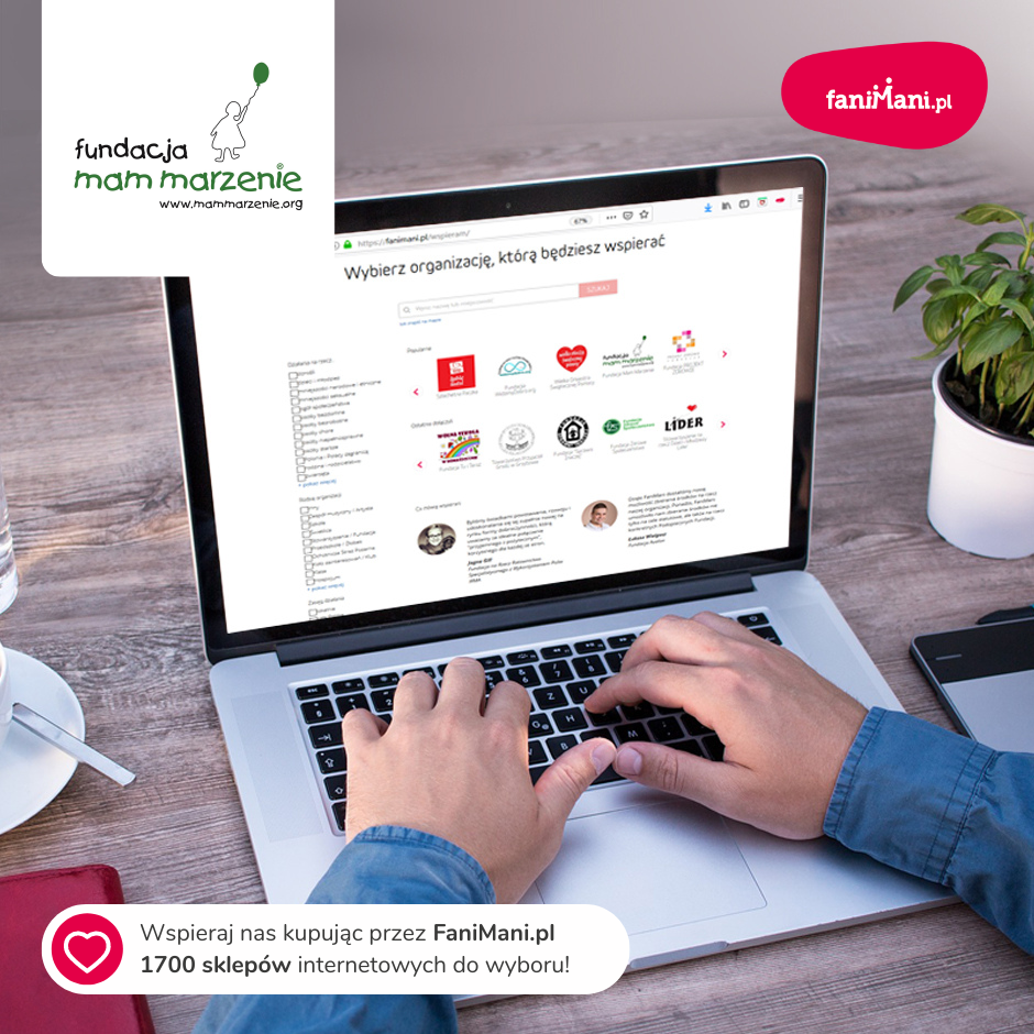 Pomagaj bezpłatnie przy okazji zakupów w internecie Płacisz tyle, co zawsze, a średnio 2,5% wartości Twoich zakupów trafi do organizacji, którą wybierzesz