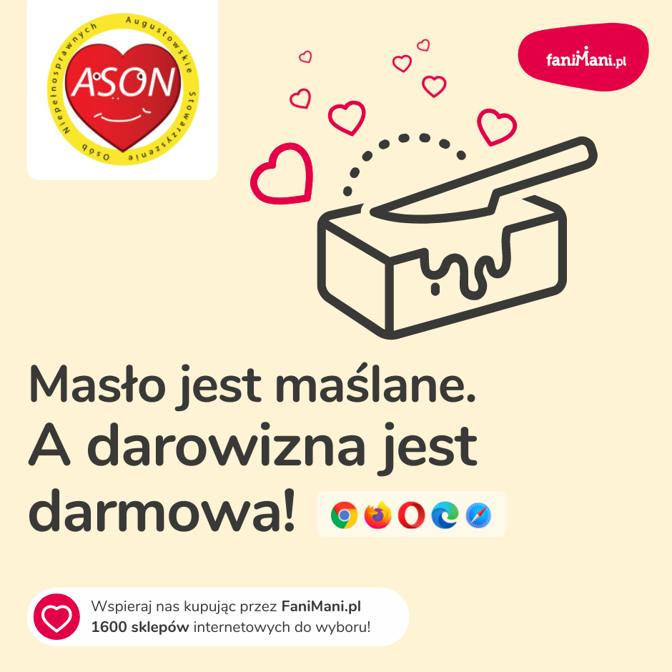 Masz telefon/laptop z funkcją kamery? Jasne, że TAK! Masz możliwość nagrać krótki filmik, gdzie pokazujesz jak prosto jest wspierać Augustowskie Stowarzyszenie Osób Niepełnosprawnych "ASON" przy zakupach online. Scenariusz również masz. Do dzieła :)