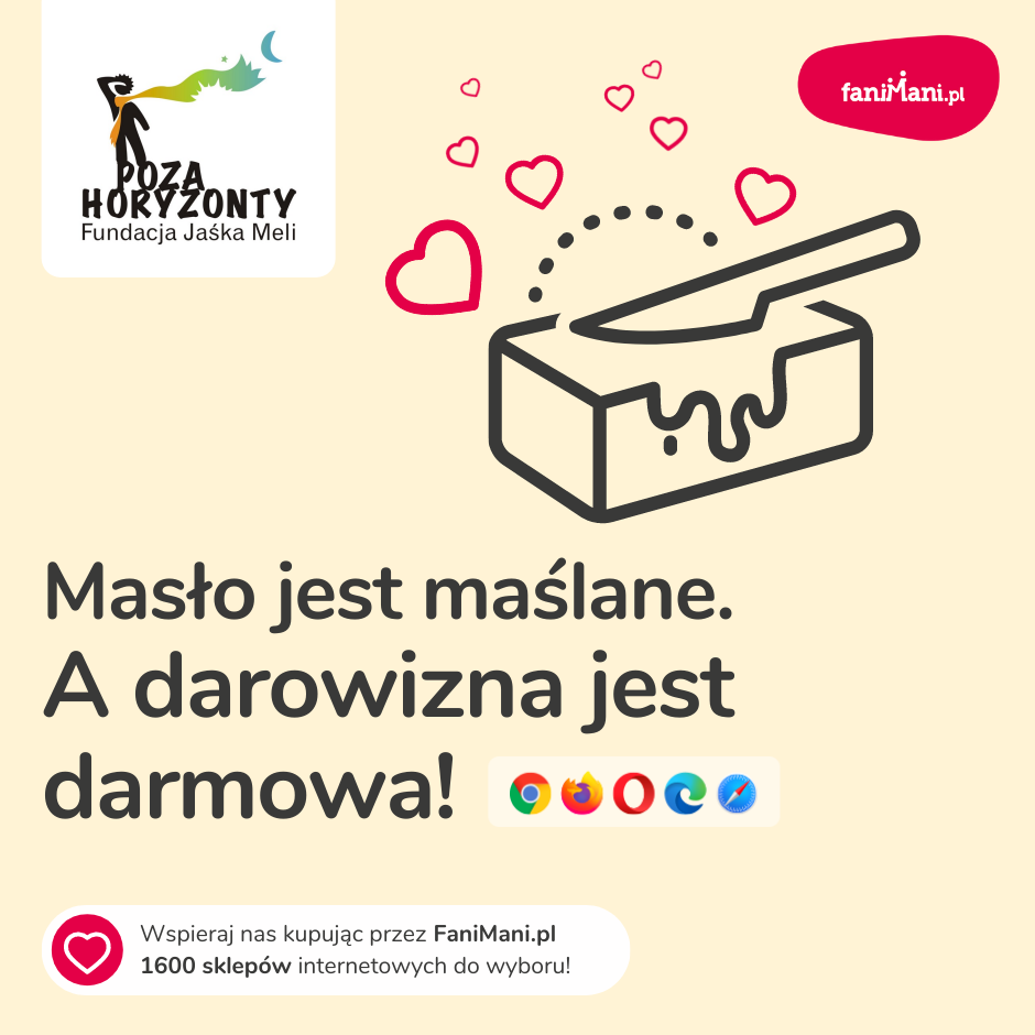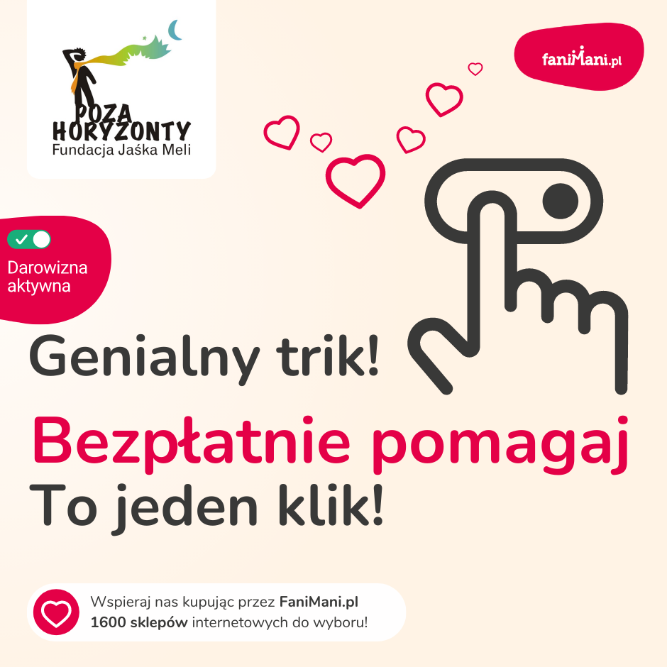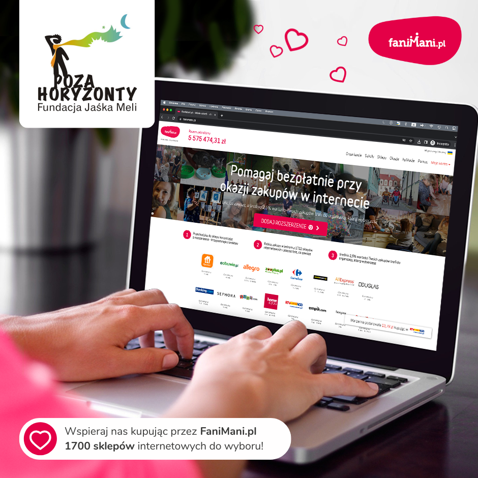 Pomagaj bezpłatnie przy okazji zakupów w internecie Płacisz tyle, co zawsze, a średnio 2,5% wartości Twoich zakupów trafi do organizacji, którą wybierzesz