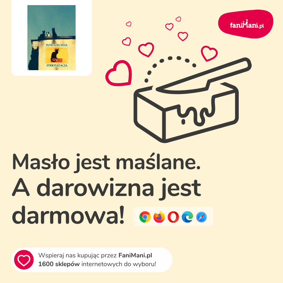 Pomagaj bezpłatnie przy okazji zakupów w internecie Płacisz tyle, co zawsze, a średnio 2,5% wartości Twoich zakupów trafi do organizacji, którą wybierzesz