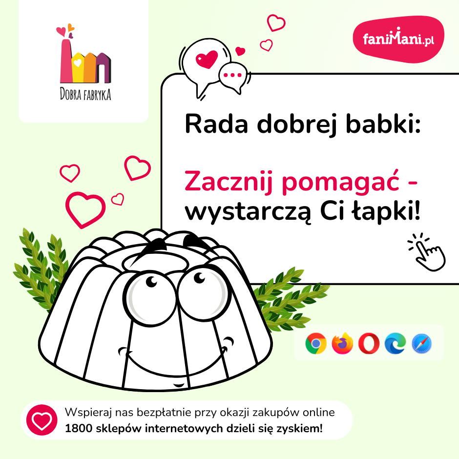 Pomagaj bezpłatnie przy okazji zakupów w internecie Płacisz tyle, co zawsze, a średnio 2,5% wartości Twoich zakupów trafi do organizacji, którą wybierzesz