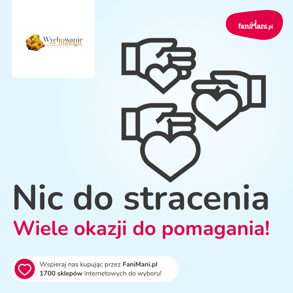Pomagaj bezpłatnie przy okazji zakupów w internecie Płacisz tyle, co zawsze, a średnio 2,5% wartości Twoich zakupów trafi do organizacji, którą wybierzesz