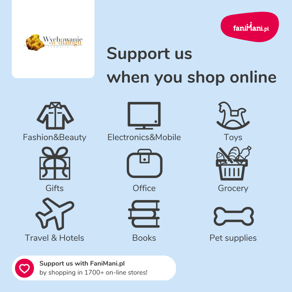 Pomagaj bezpłatnie przy okazji zakupów w internecie Płacisz tyle, co zawsze, a średnio 2,5% wartości Twoich zakupów trafi do organizacji, którą wybierzesz