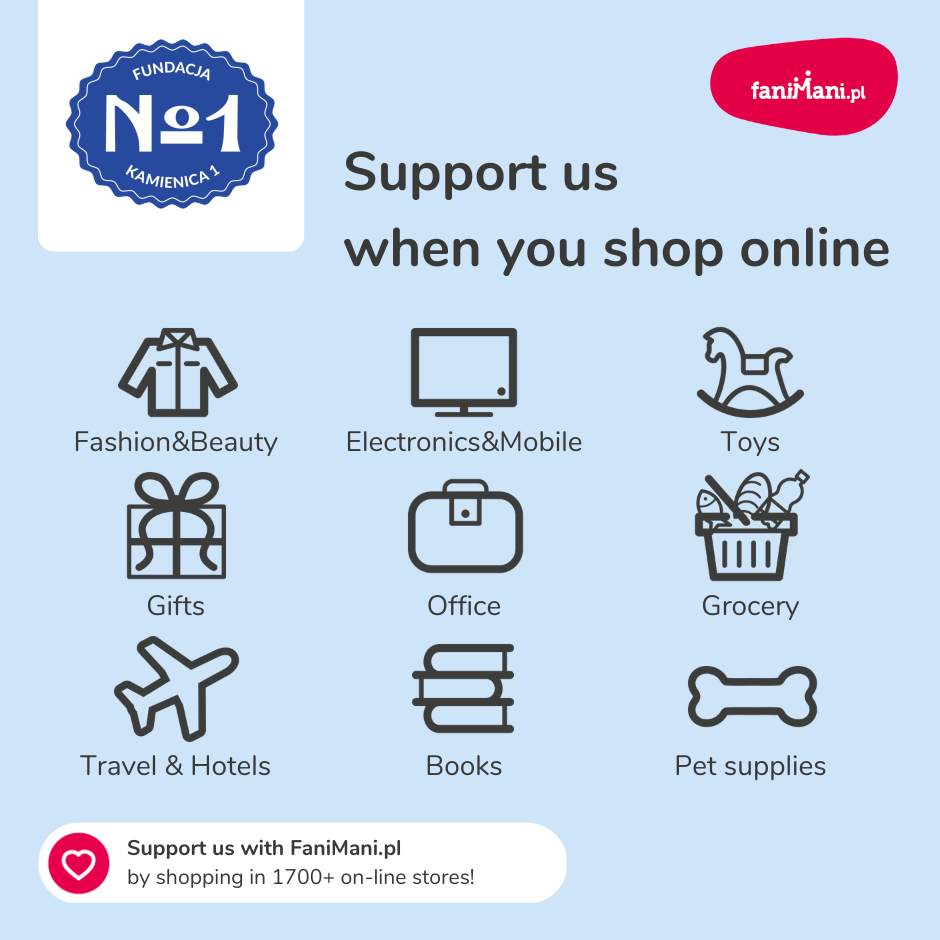 Pomagaj bezpłatnie przy okazji zakupów w internecie Płacisz tyle, co zawsze, a średnio 2,5% wartości Twoich zakupów trafi do organizacji, którą wybierzesz