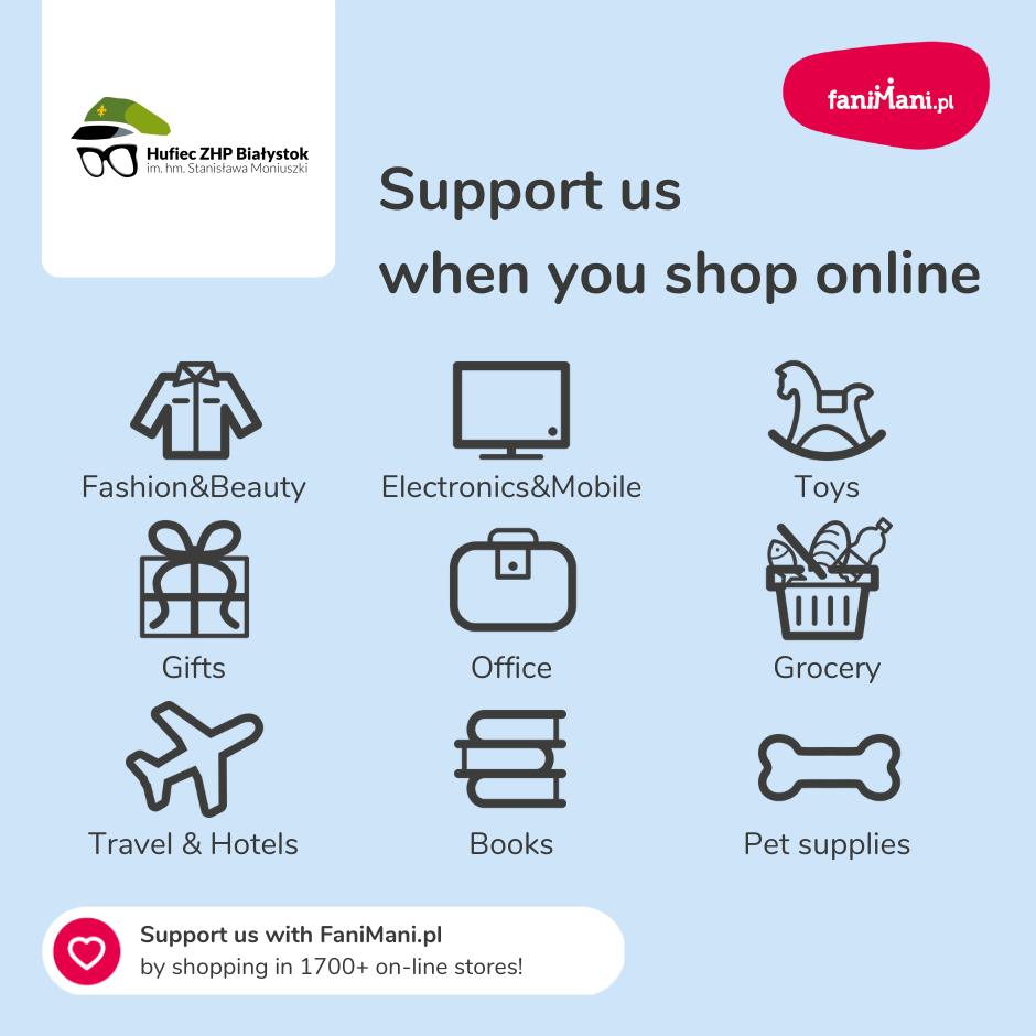 Wyślij informację prasową do lokalnych mediów i poinformuj ich o możliwości wspierania Waszej organizacji przy okazji zakupów w internecie przez FaniMani.pl.