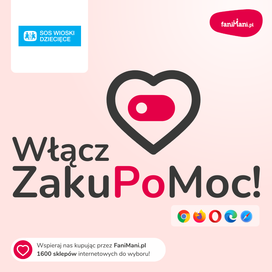 Pomagaj bezpłatnie przy okazji zakupów w internecie Płacisz tyle, co zawsze, a średnio 2,5% wartości Twoich zakupów trafi do organizacji, którą wybierzesz