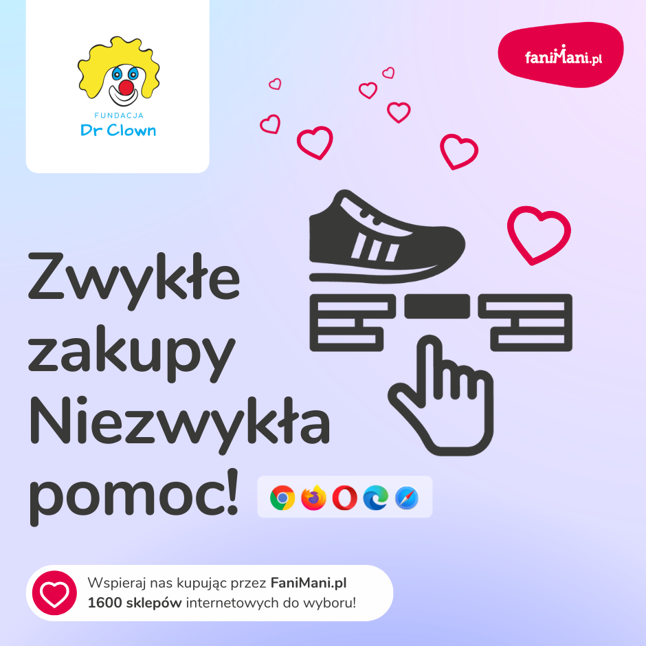 Pomagaj bezpłatnie przy okazji zakupów w internecie Płacisz tyle, co zawsze, a średnio 2,5% wartości Twoich zakupów trafi do organizacji, którą wybierzesz
