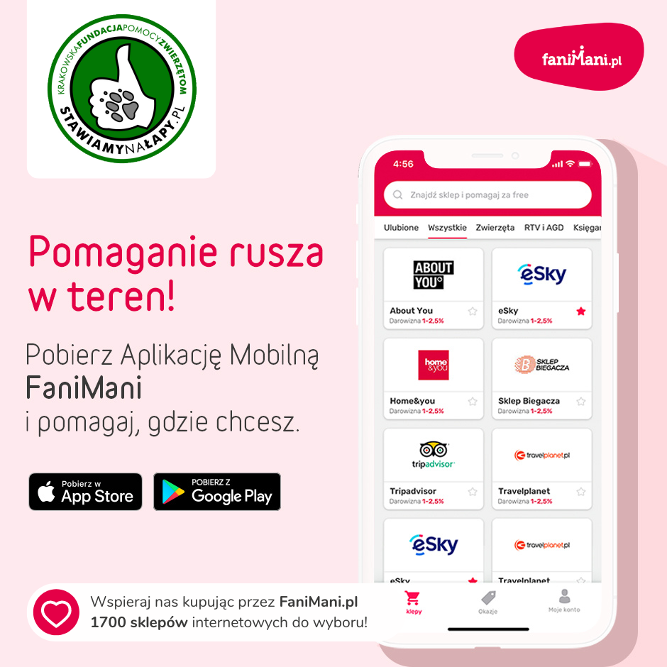 Teraz wspierasz: Krakowska Fundacja Pomocy Zwierzętom Stawiamy na Łapy