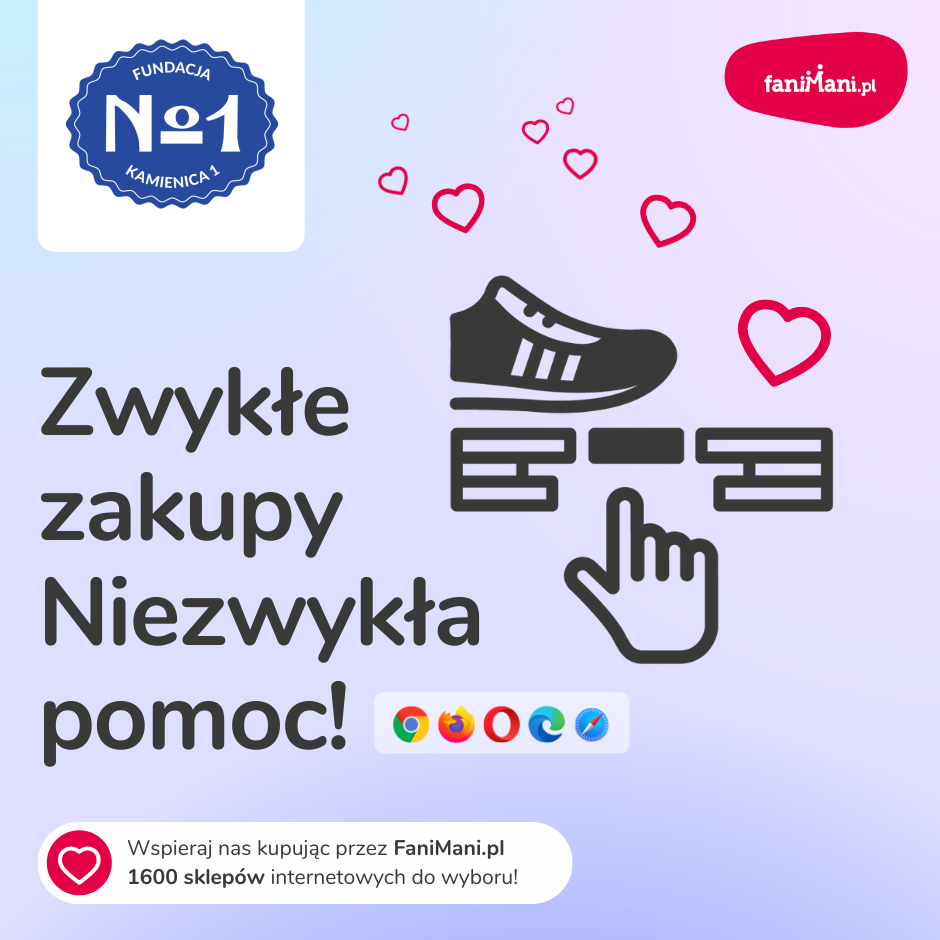 Pomagaj bezpłatnie przy okazji zakupów w internecie Płacisz tyle, co zawsze, a średnio 2,5% wartości Twoich zakupów trafi do organizacji, którą wybierzesz