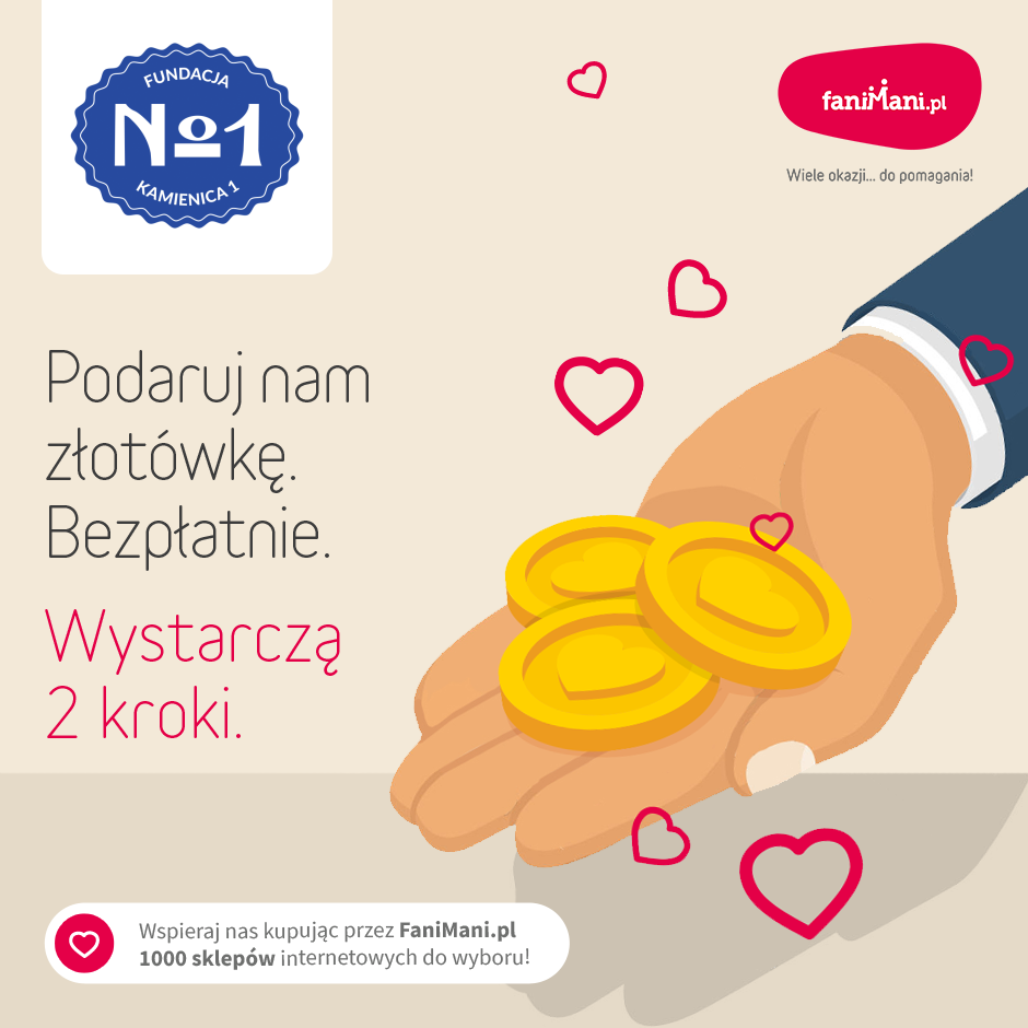 Na stronie fanimani.pl/podaruj1zl każdy użytkownik może podarować Wam bezpłatnie 1zł. Wystarczy, że założy konto użytkownika, potwierdzi je i zainstaluje Przypominajkę.