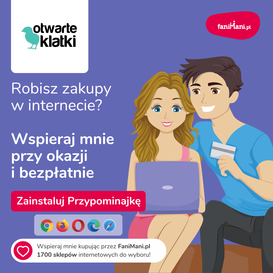 Pomagaj bezpłatnie przy okazji zakupów w internecie Płacisz tyle, co zawsze, a średnio 2,5% wartości Twoich zakupów trafi do organizacji, którą wybierzesz