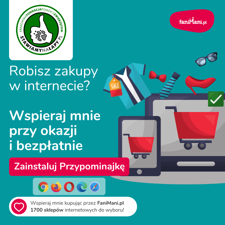 Teraz wspierasz: Krakowska Fundacja Pomocy Zwierzętom Stawiamy na Łapy