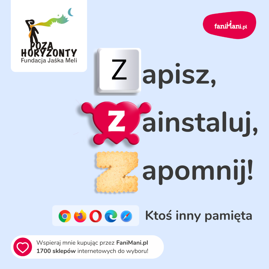 Pomagaj bezpłatnie przy okazji zakupów w internecie Płacisz tyle, co zawsze, a średnio 2,5% wartości Twoich zakupów trafi do organizacji, którą wybierzesz