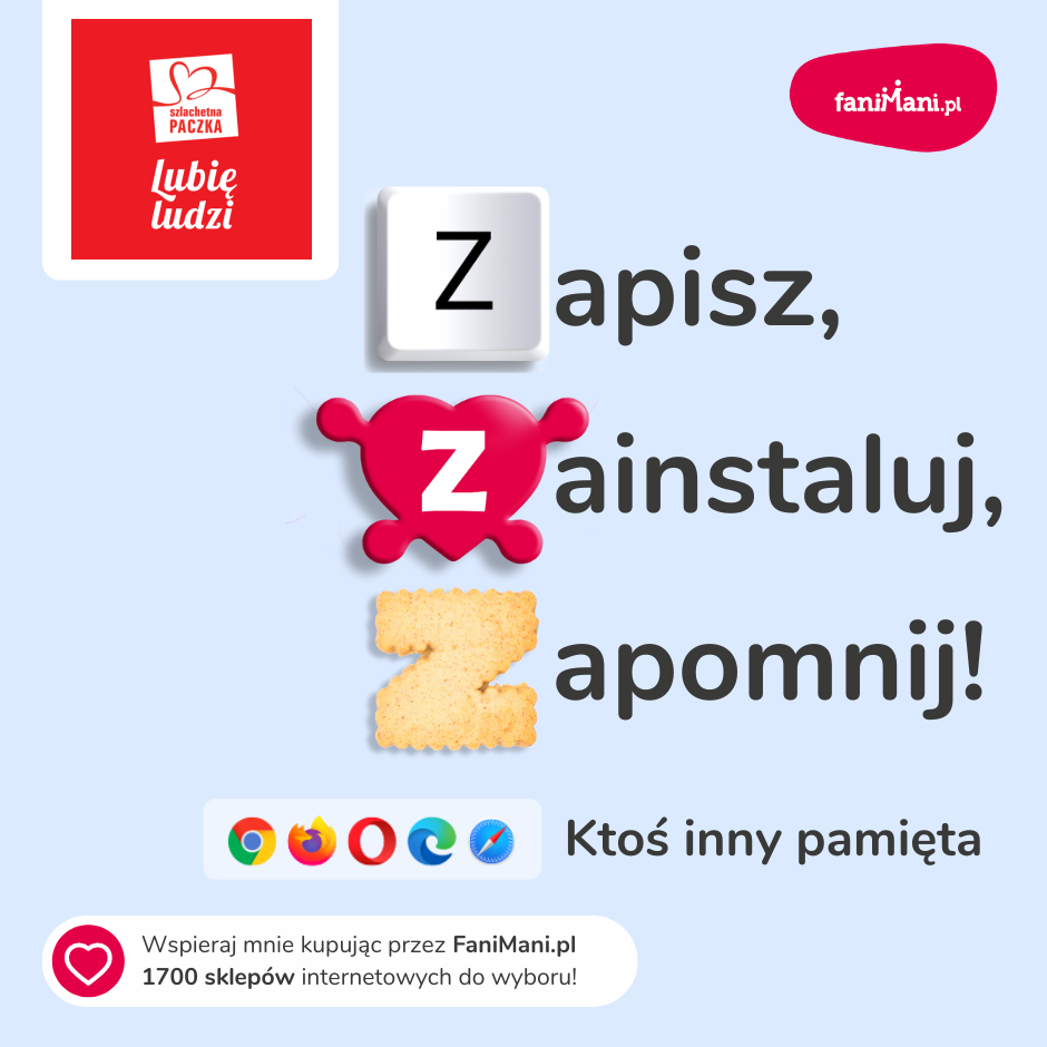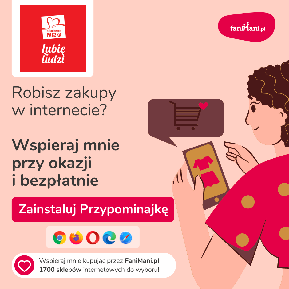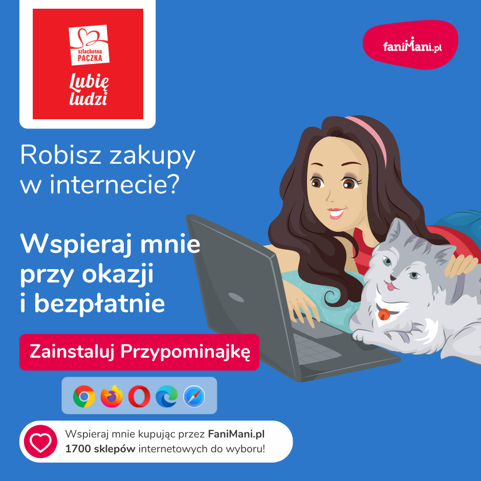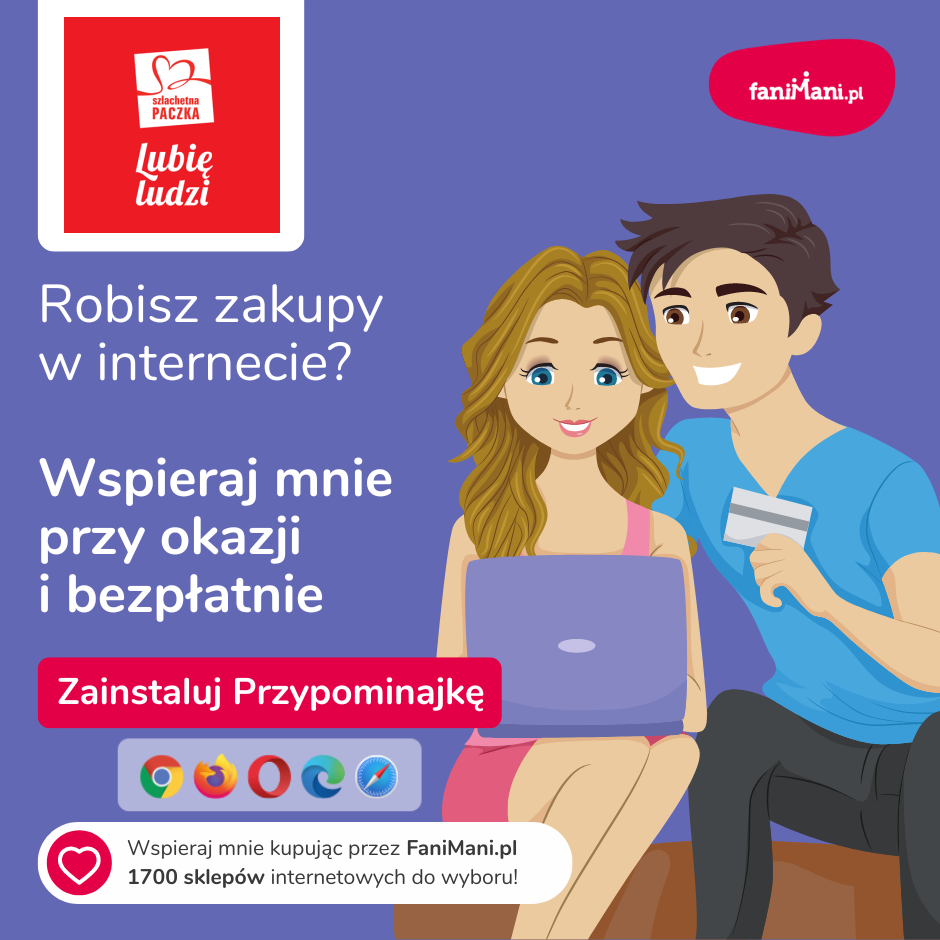 Pomagaj bezpłatnie przy okazji zakupów w internecie Płacisz tyle, co zawsze, a średnio 2,5% wartości Twoich zakupów trafi do organizacji, którą wybierzesz