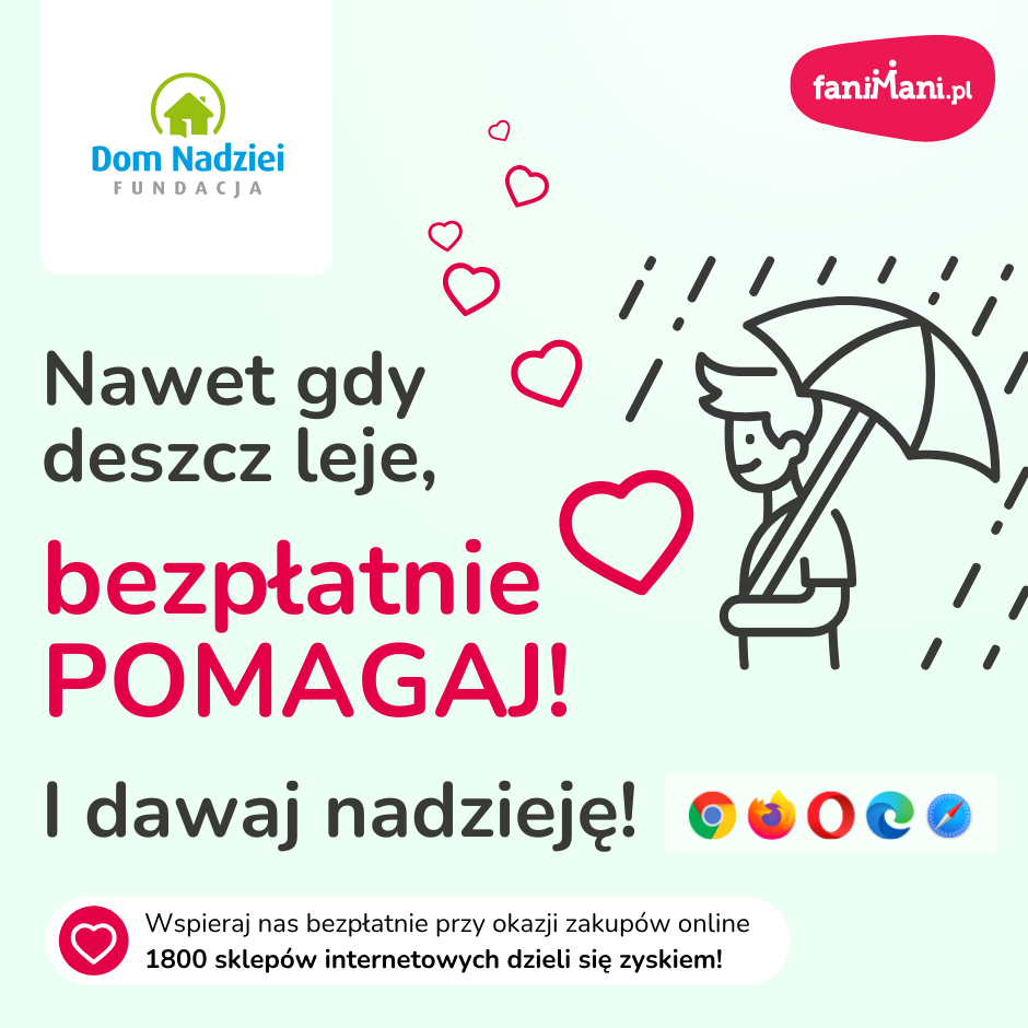 Nawet gdy deszcz leje, bezpłatnie pomagaj! I dawaj nadzieję!