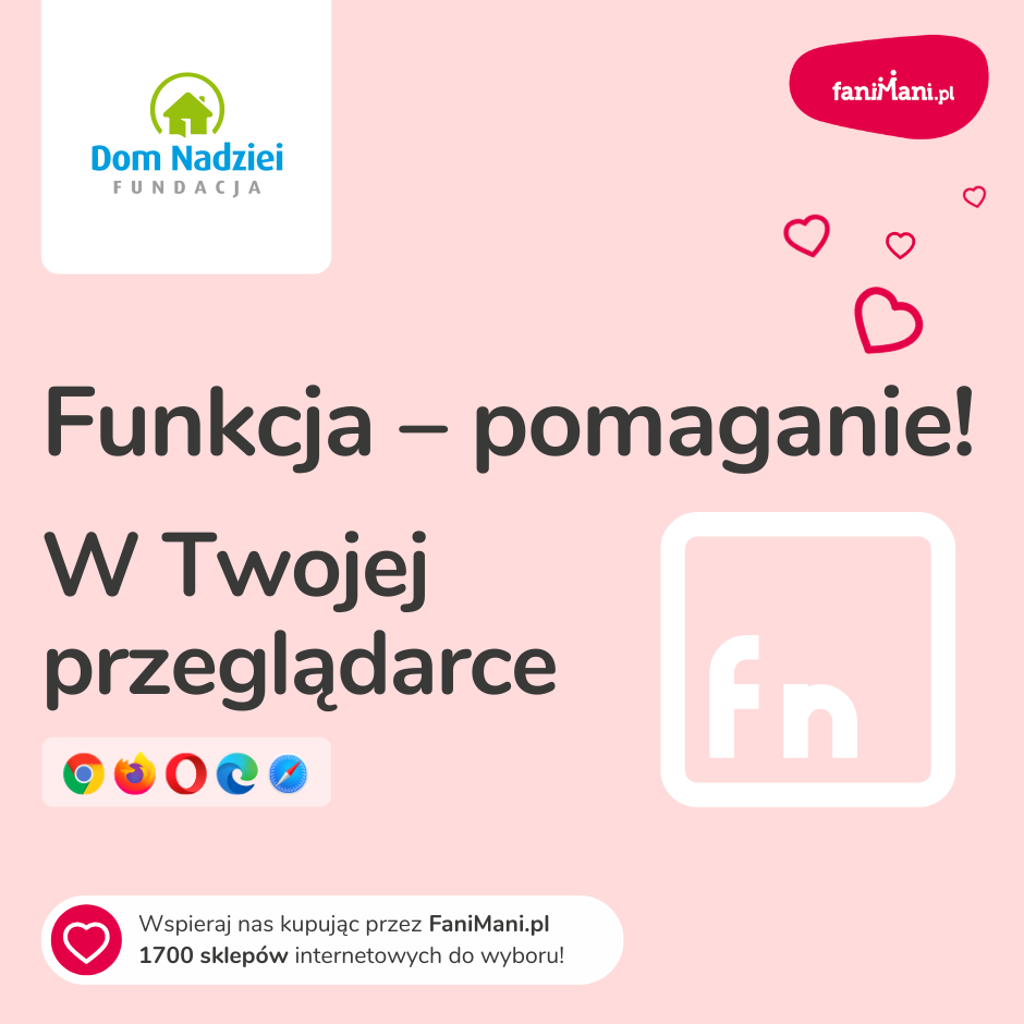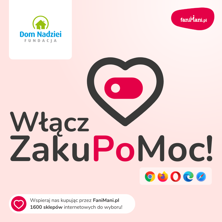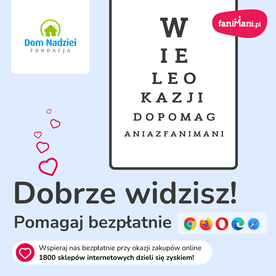 Pomagaj bezpłatnie przy okazji zakupów w internecie Płacisz tyle, co zawsze, a średnio 2,5% wartości Twoich zakupów trafi do organizacji, którą wybierzesz