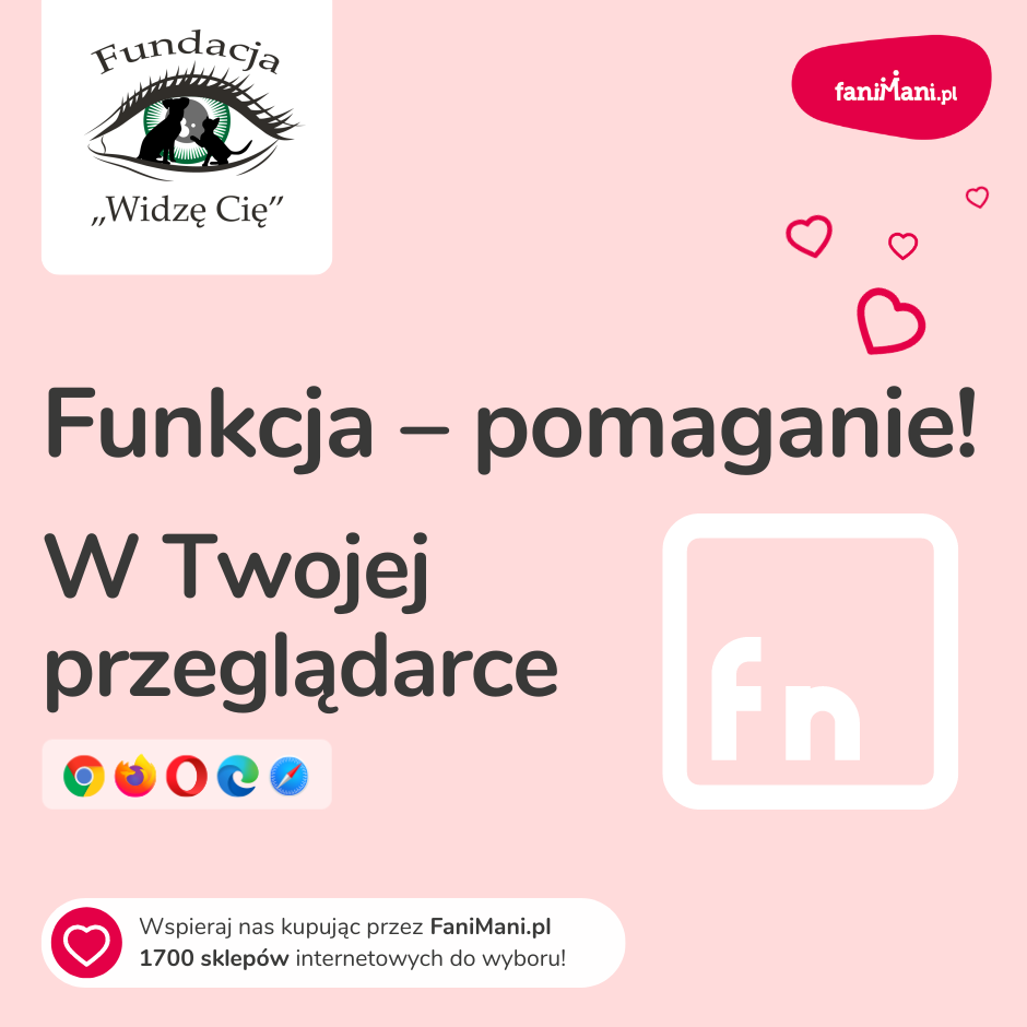 Pomagaj bezpłatnie przy okazji zakupów w internecie Płacisz tyle, co zawsze, a średnio 2,5% wartości Twoich zakupów trafi do organizacji, którą wybierzesz