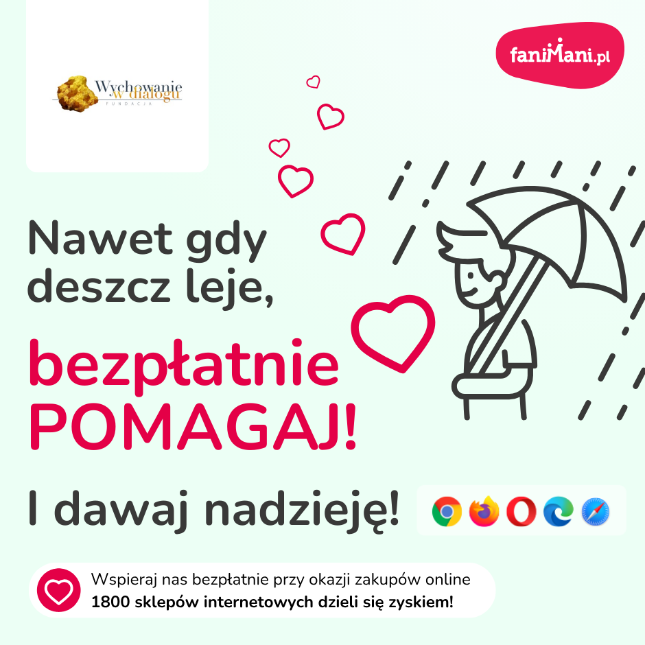 Nawet gdy deszcz leje, bezpłatnie pomagaj! I dawaj nadzieję!