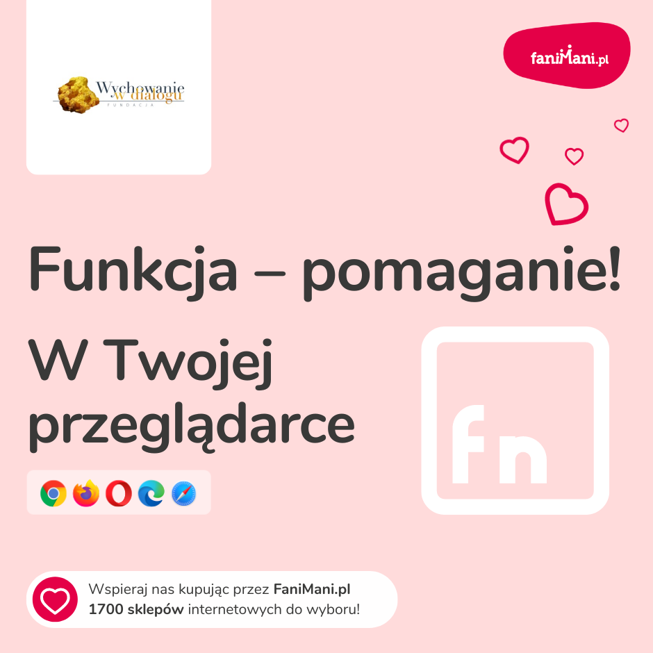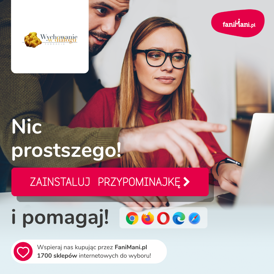 Pomagaj bezpłatnie przy okazji zakupów w internecie Płacisz tyle, co zawsze, a średnio 2,5% wartości Twoich zakupów trafi do organizacji, którą wybierzesz