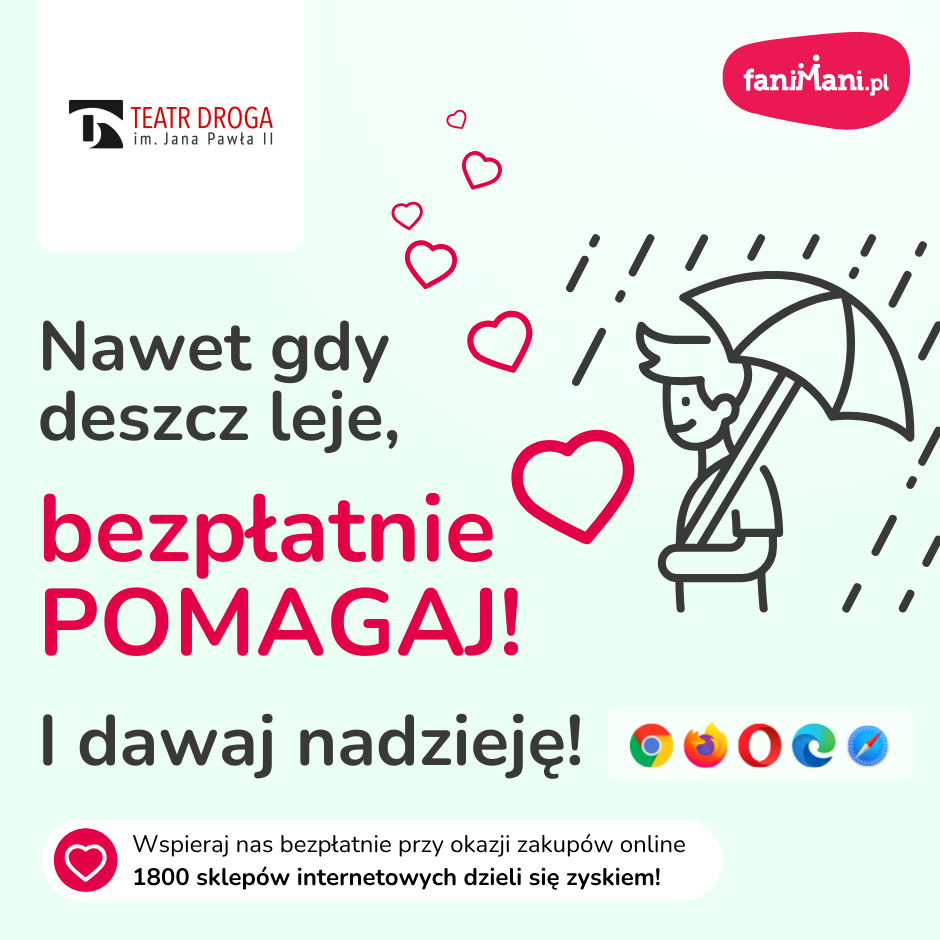 Nawet gdy deszcz leje, bezpłatnie pomagaj! I dawaj nadzieję!