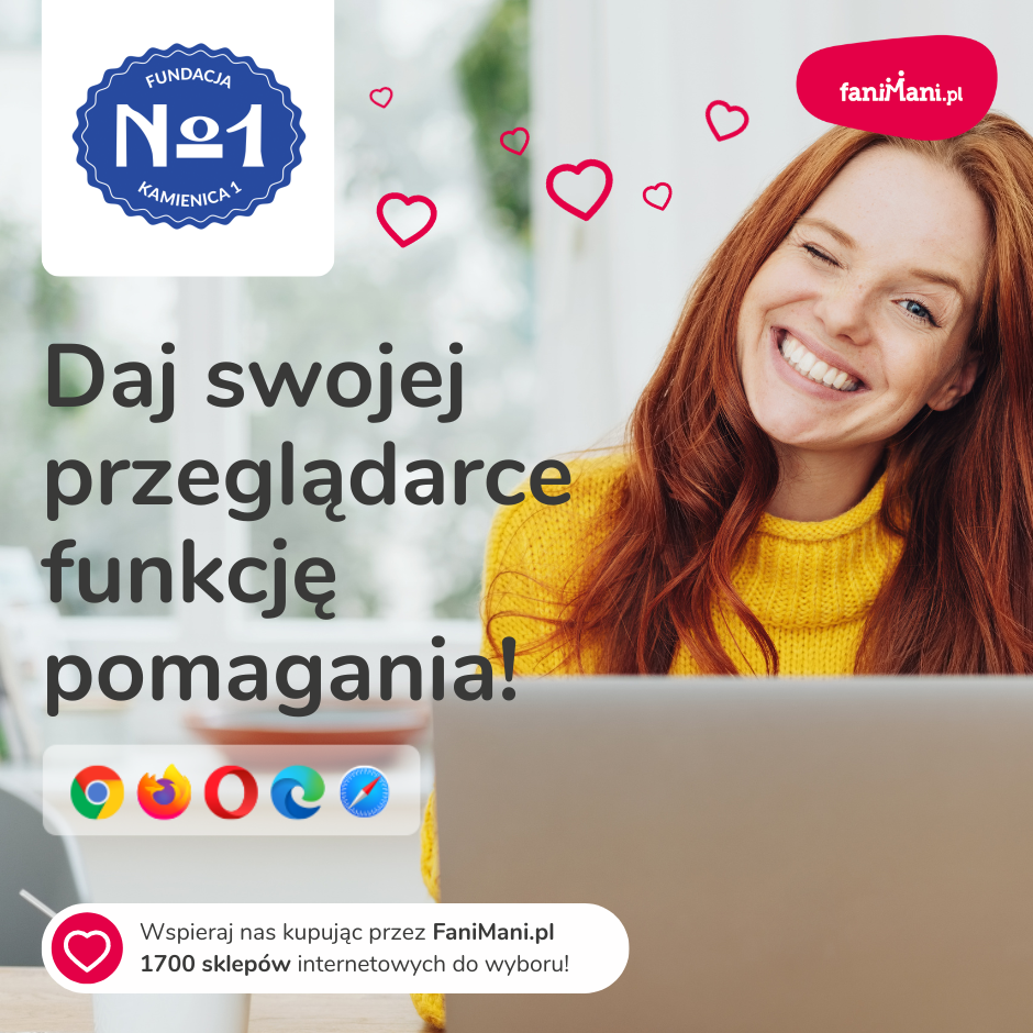 Pomagaj bezpłatnie przy okazji zakupów w internecie Płacisz tyle, co zawsze, a średnio 2,5% wartości Twoich zakupów trafi do organizacji, którą wybierzesz