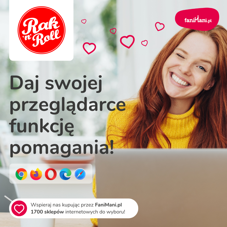 Pomagaj bezpłatnie przy okazji zakupów w internecie Płacisz tyle, co zawsze, a średnio 2,5% wartości Twoich zakupów trafi do organizacji, którą wybierzesz