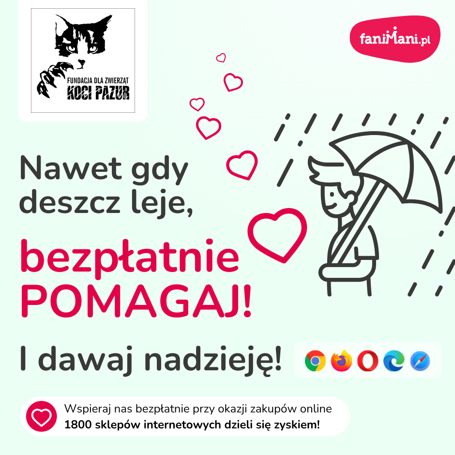 Nawet gdy deszcz leje, bezpłatnie pomagaj! I dawaj nadzieję!