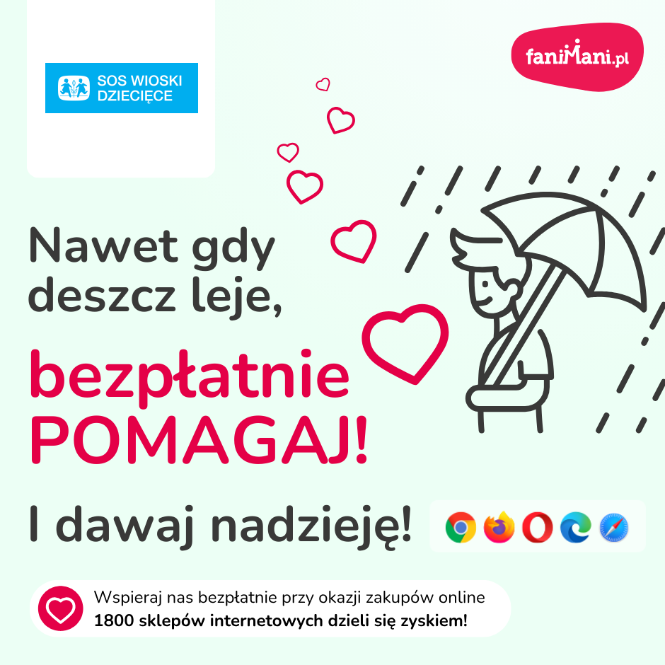 Nawet gdy deszcz leje, bezpłatnie pomagaj! I dawaj nadzieję!