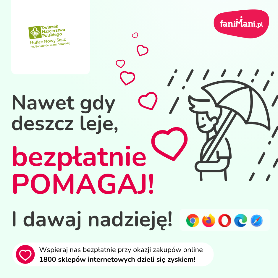 Nawet gdy deszcz leje, bezpłatnie pomagaj! I dawaj nadzieję!