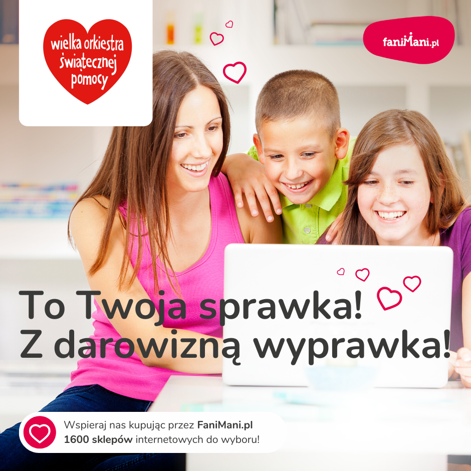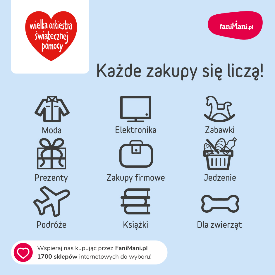 Pomagaj bezpłatnie przy okazji zakupów w internecie Płacisz tyle, co zawsze, a średnio 2,5% wartości Twoich zakupów trafi do organizacji, którą wybierzesz