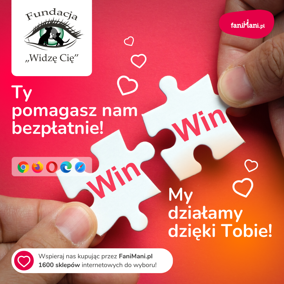 Pomagaj bezpłatnie przy okazji zakupów w internecie Płacisz tyle, co zawsze, a średnio 2,5% wartości Twoich zakupów trafi do organizacji, którą wybierzesz