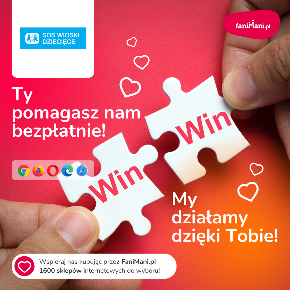 Pomagaj bezpłatnie przy okazji zakupów w internecie Płacisz tyle, co zawsze, a średnio 2,5% wartości Twoich zakupów trafi do organizacji, którą wybierzesz