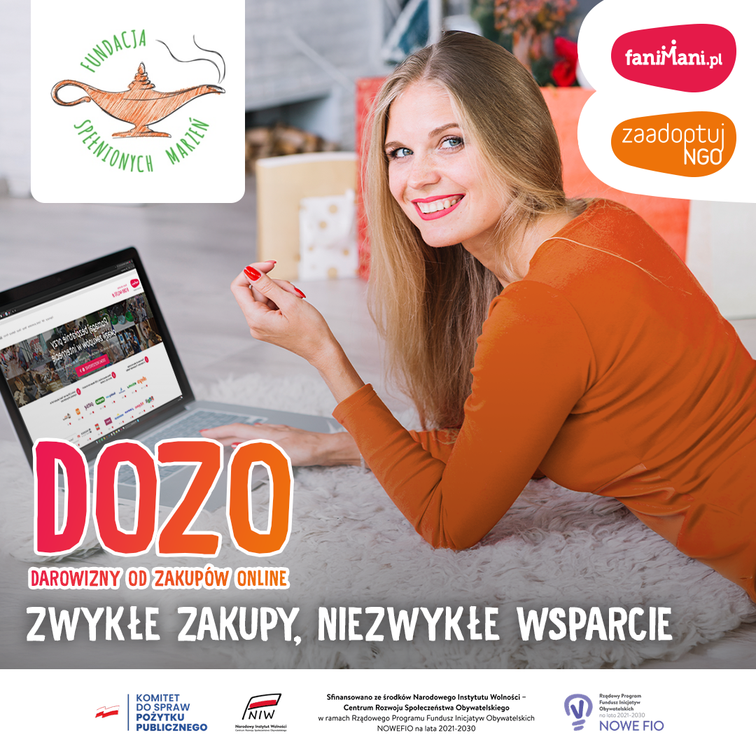 Pomagaj bezpłatnie przy okazji zakupów w internecie Płacisz tyle, co zawsze, a średnio 2,5% wartości Twoich zakupów trafi do organizacji, którą wybierzesz