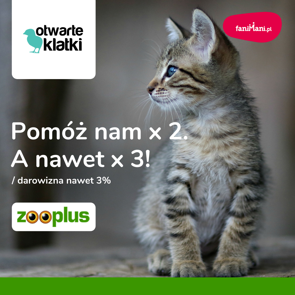 Teraz jest idealny moment, żeby zebrać jeszcze więcej. Razem z naszym partnerem, sklepem zooplus.pl, uruchamiamy akcję promocyjną ZWIĘKSZAMY DAROWIZNY. Zachęcam do wzięcia udziału.