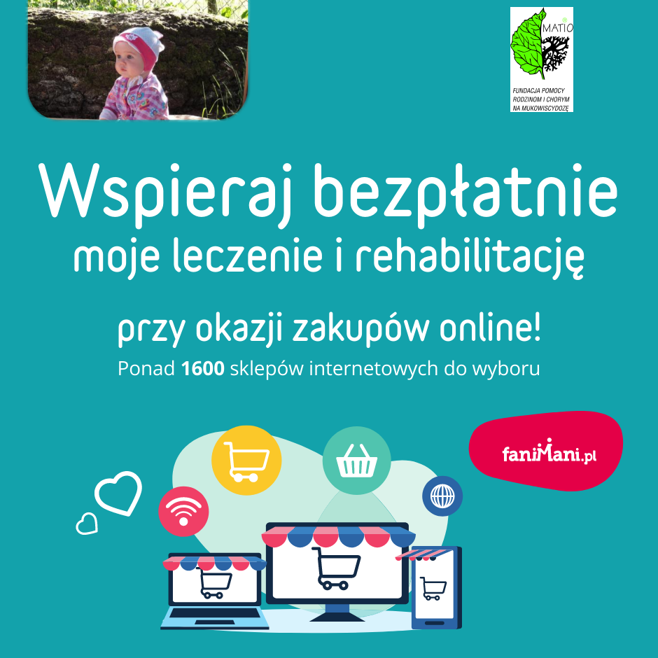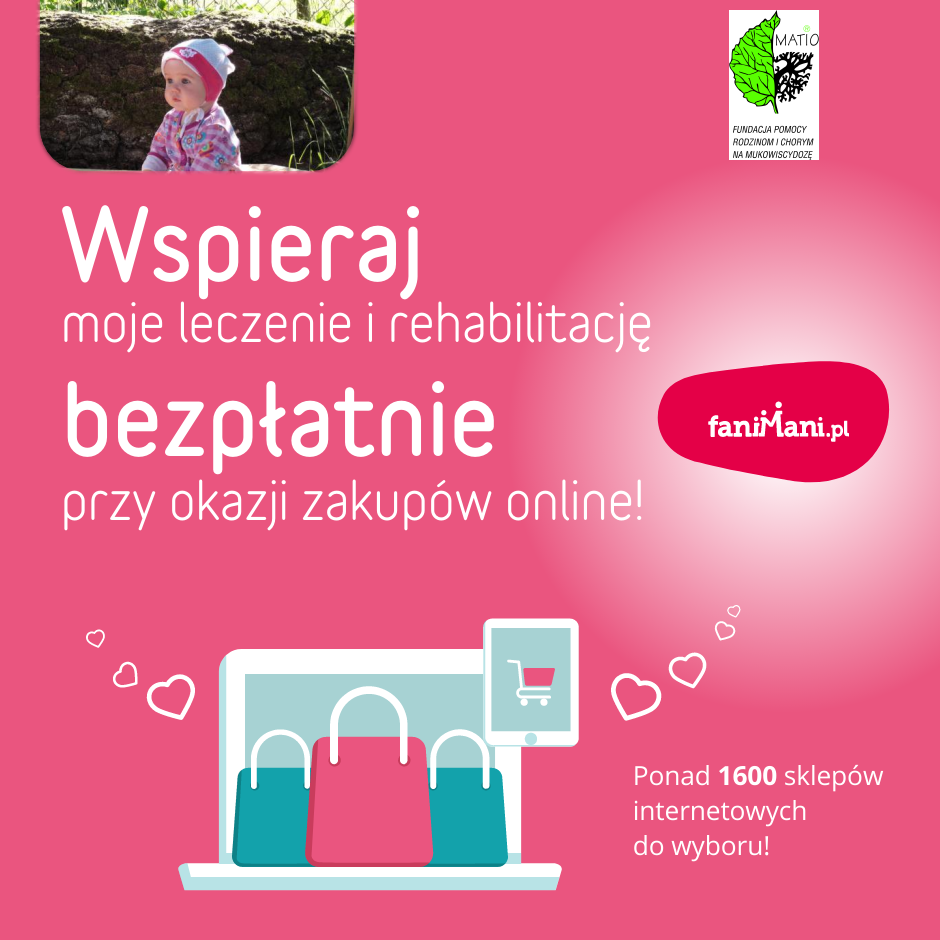 Udostępnij materiały i pomóż Pomóż Hani Bernaciak w walce z mukowiscydozą zbierać darowizny od zakupów online