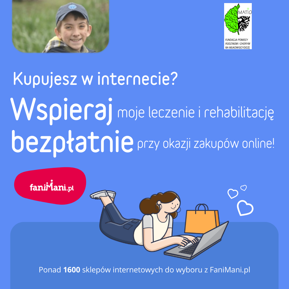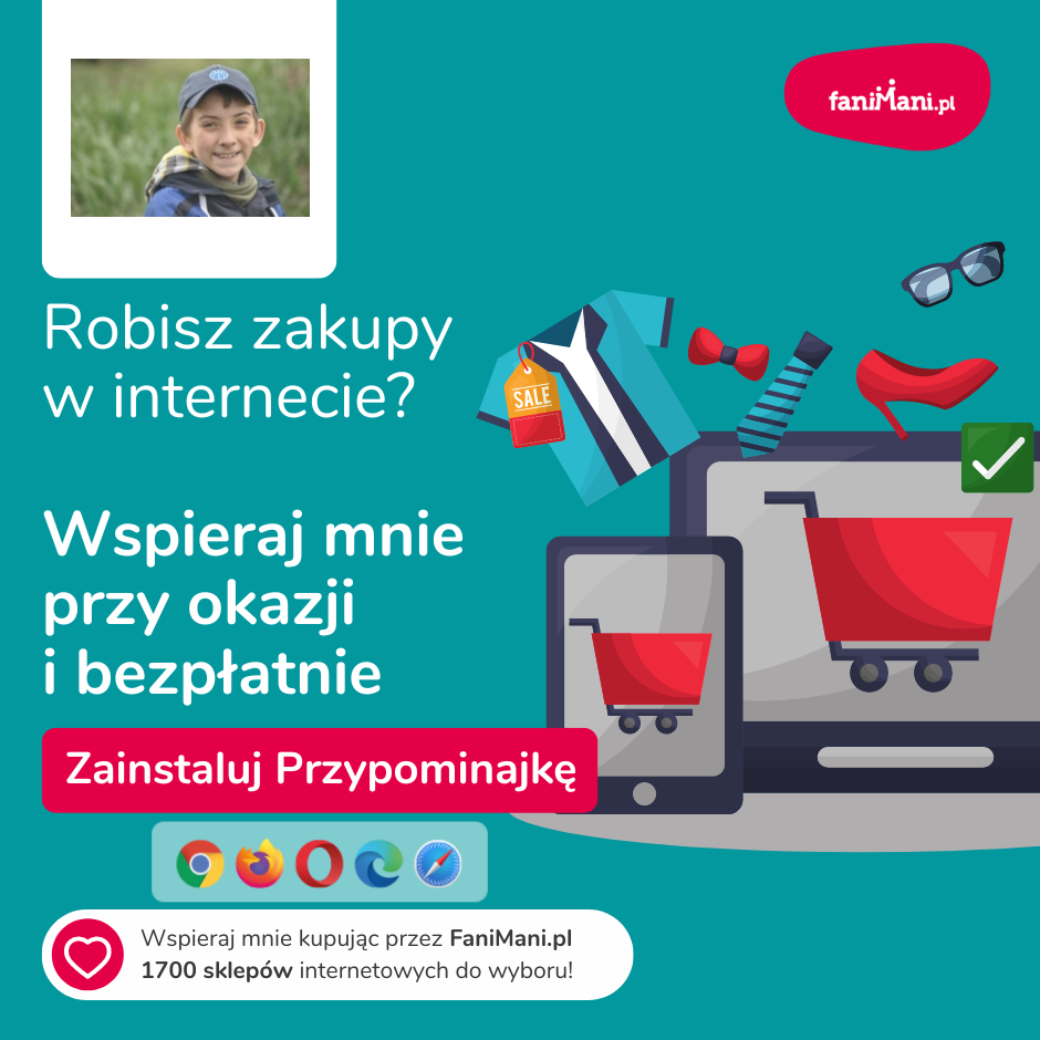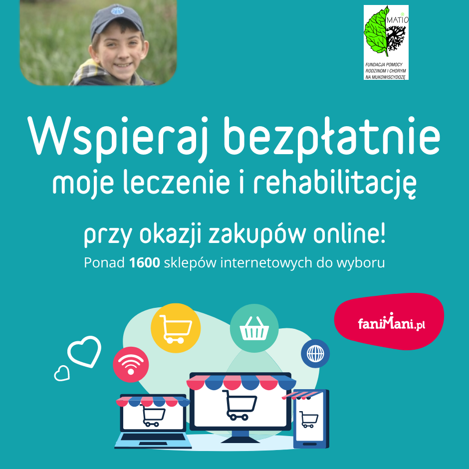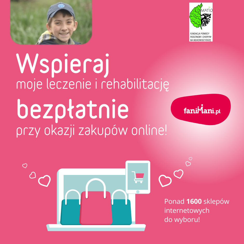 Udostępnij materiały i pomóż Pomóż Mikołajowi walczyć z mukowiscydozą! zbierać darowizny od zakupów online