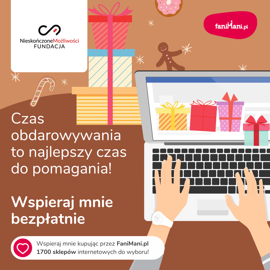 Pomagaj bezpłatnie przy okazji zakupów w internecie Płacisz tyle, co zawsze, a średnio 2,5% wartości Twoich zakupów trafi do organizacji, którą wybierzesz