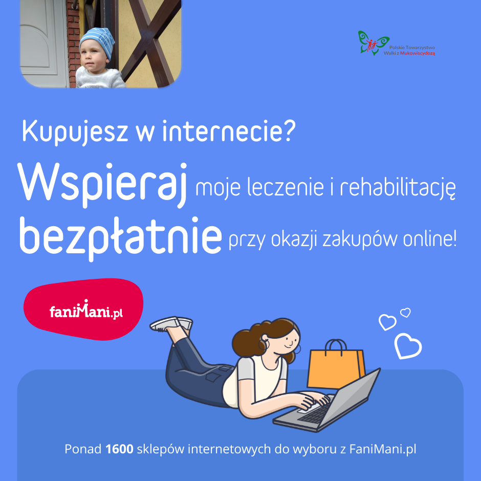 Udostępnij materiały i pomóż Pomoc dla Michała Mantaja w walce z mukowiscydozą zbierać darowizny od zakupów online