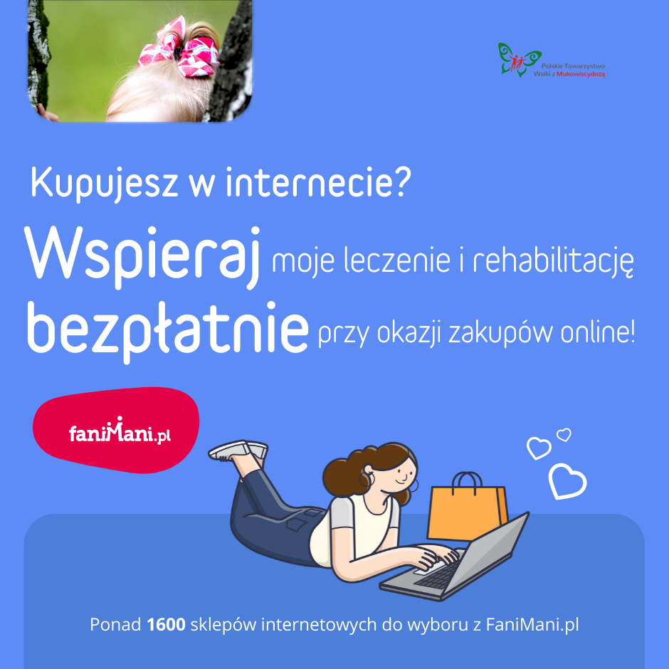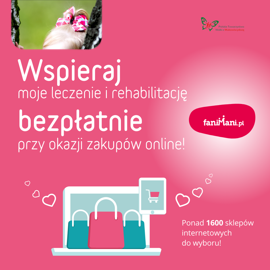 Udostępnij materiały i pomóż Pomóż Hani Karbowiak w walce z mukowiscydozą zbierać darowizny od zakupów online
