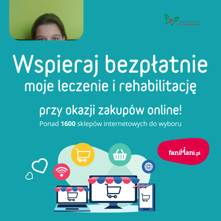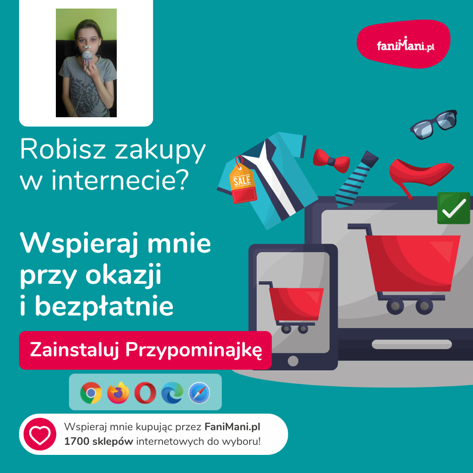 Udostępnij materiały i pomóż Pomóż Małgosi Kowalskiej w walce z mukowiscydozą zbierać darowizny od zakupów online