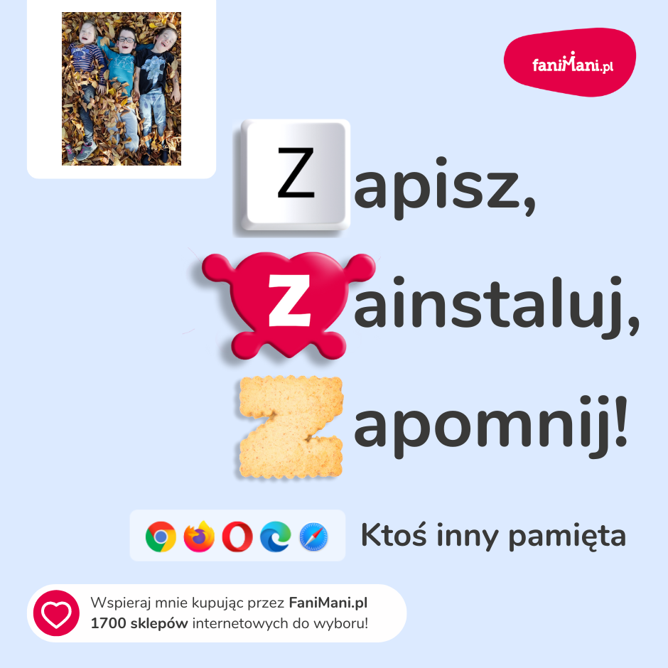 Udostępnij materiały i pomóż Leon, Teodor i Matylda Kopińscy zbierać darowizny od zakupów online