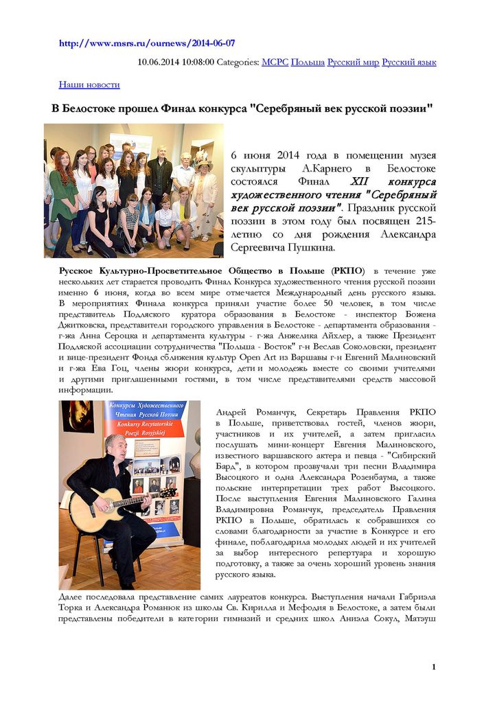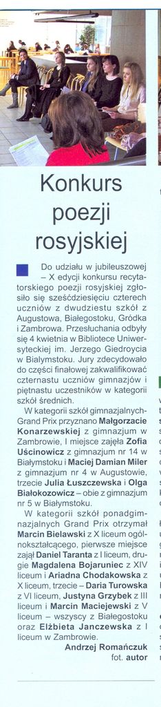 Od wiosny 2003r., RSKO każdego roku przeprowadza Konkurs Recytatorski Poezji Rosyjskiej.